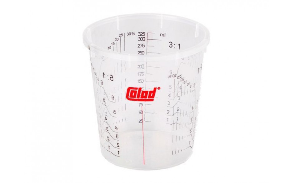 Transparenter Einweg-Mischbecher aus ungiftigem Polypropylen mit Mililiter-Einteilung. Er ist silikonfrei, lösemittelbeständig und platzsparend stapelbar.